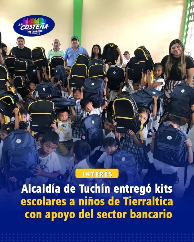 Alcaldía de Tuchín entregó kits escolares a niños de Tierraltica con apoyo del sector bancario